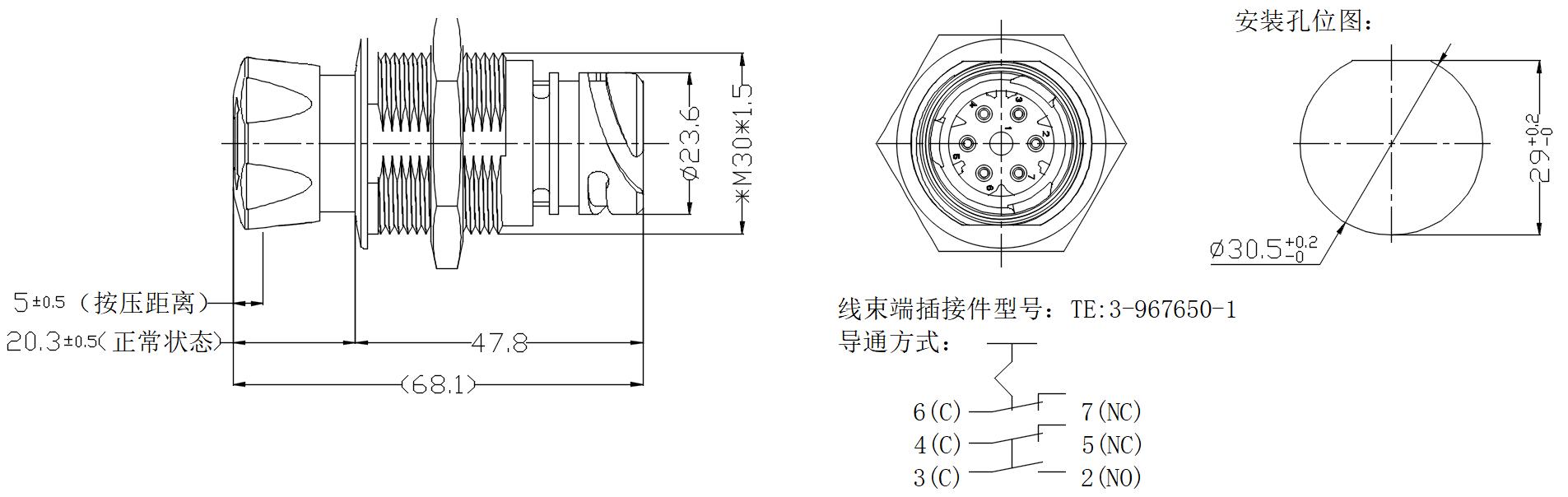 7.按鈕操作力:20-50N,扭矩:3N.M