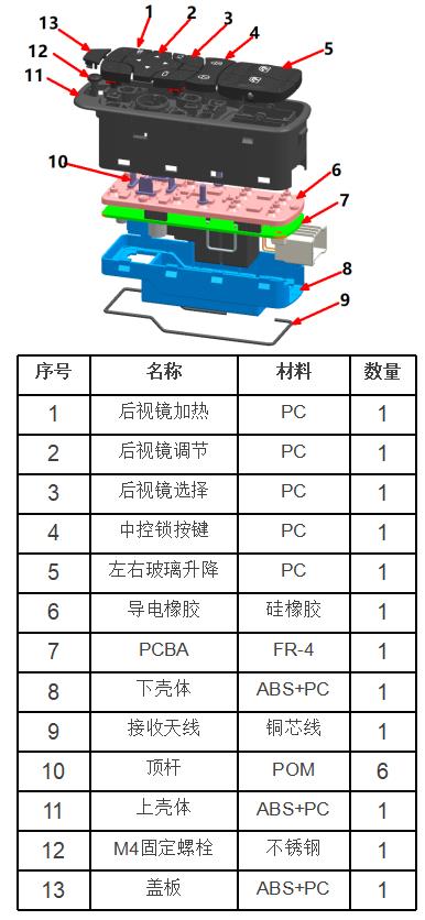 K.玻璃升降按鍵行程:±12°,中控鎖及后視鏡調(diào)節(jié)按鍵行程: ± 8°;