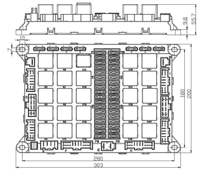 遠近光控制、小燈控制、霧燈控制、閃光控制、雨刮控制、制動控制、喇叭控制、玻璃升降控制、空調控制、后照燈控制、診斷控制、ECU ON火控制、風扇控制、舉升控制、后處理加熱控制