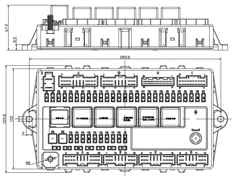 ON火控制及ECU ON火控制、電源管理、ACC控制、空調控制、雨刮控制、燈光控制、喇叭控制、檔位控制、點火鎖控制、收放機控制、發動機診斷、安全帶檢測報警、風扇控制、電動窗控制、預熱控制、傳感器信號檢測、PCAN-H/PCAN-L、ICAN-H/ICAN-L、上裝CAN-H/上裝CAN-L、電動窗LIN總線